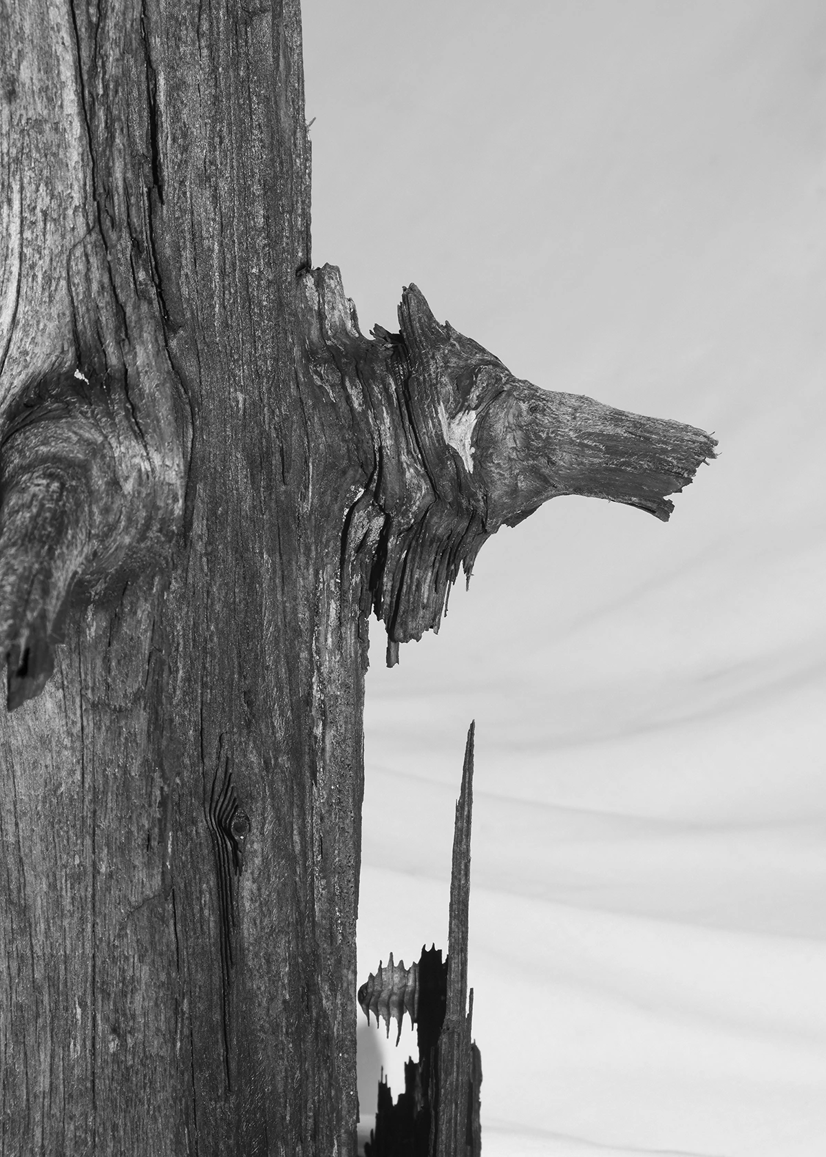 Obecnie największym niebezpieczeństwo dla lasów Karkonoszy i Gór Izerskich – i przecież nie tylko dla nich – stwarzają zmiany klimatu. Przynoszą one szczególnie niebezpieczne skutki dla monokultur, zwłaszcza złożonych z drzew iglastych. Mimo starań podejmowanych od lat 90., monokultura świerkowa wciąż dominuje w Sudetach. A tak się składa, że w strefie klimatu umiarkowanego świerki powoli zaczynają wymierać. Kikuty są już nieodłącznym elementem krajobrazu Karkonoszy i Gór Izerskich. Mam wrażenie, że z biegiem lat stały się przezroczyste. To dlatego zaczęłam je fotografować.